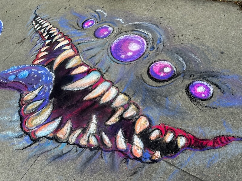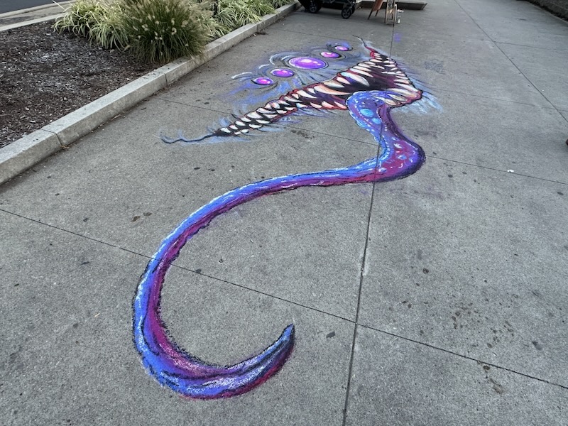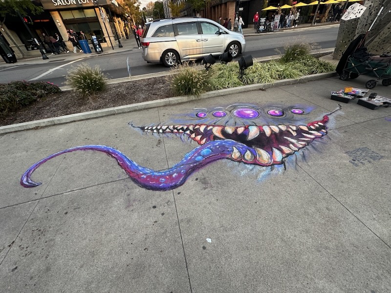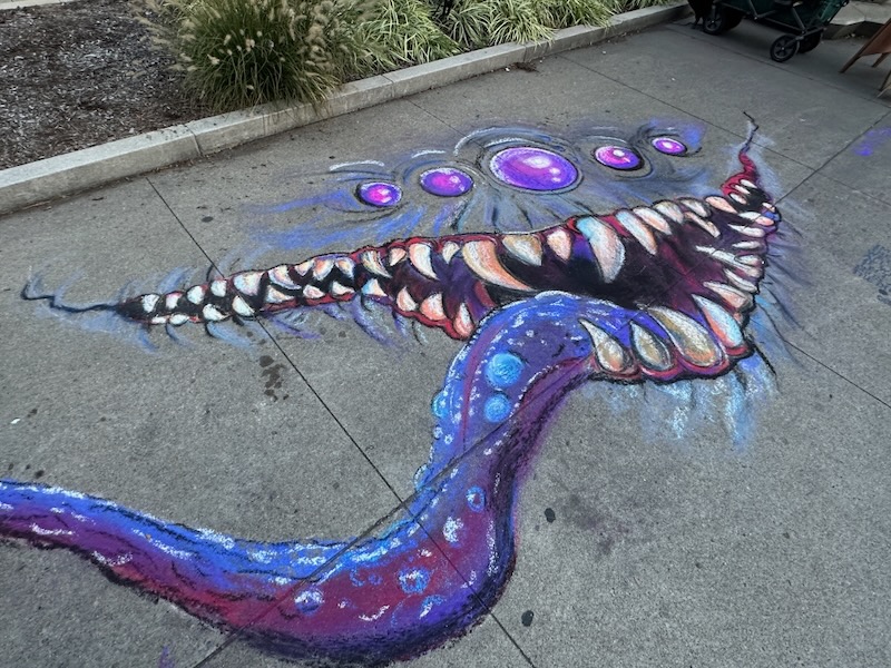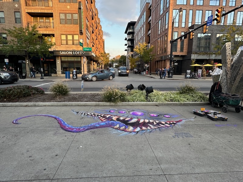 Glad to be back at the Short North Gallery Hop after missing the past few months. As Halloween is still in full swing, I opted to pay tribute to the dangerous and often-trod upon Sidewalk Mimic! Almost all of the comments I got while drawing this were “that’s so beautiful!”…. which makes me a little concerned for the people of Columbus, but I’m glad I could entertain and brighten their slightly off-kilter evening!